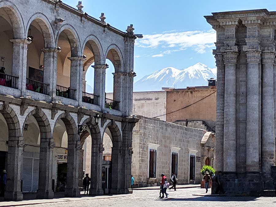 Situada sobre un altiplano al pie de tres grandes volcanes apagados y a 2,360 mts. de altura Arequipa goza de un ambiente y posición única. Tiene personalidad muy suya, acentuándose su originalidad por la utilización en sus construcciones de Sillar, piedra volcánica que se encuentra en abundancia y muy cercana a la ciudad que le ha otorgado la denominación de “Ciudad Blanca”.